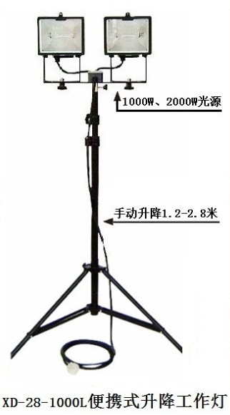 便攜式升降工作燈由2個(gè)500W品牌燈頭組成,可根據(jù)現(xiàn)場(chǎng)需要將每個(gè)燈頭單獨(dú)做上下、左右大角度調(diào)節(jié)旋轉(zhuǎn)實(shí)現(xiàn)360°全方位照明;整體照明遠(yuǎn)近兼顧,照明亮度高、范圍大,飛利浦燈泡壽命長(zhǎng)。