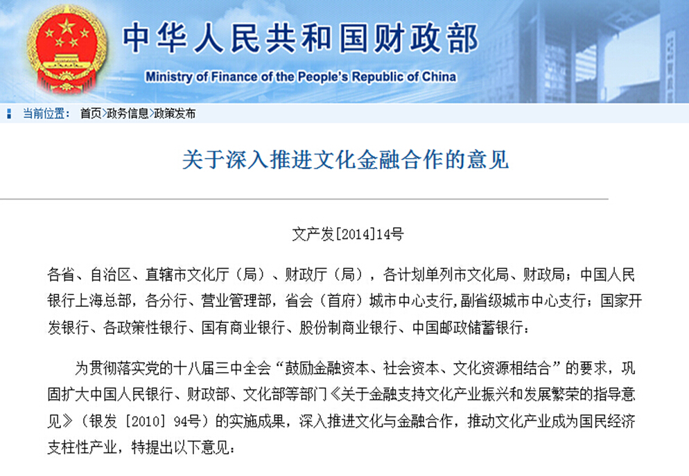 將文化產(chǎn)業(yè)發(fā)展成為新興的國(guó)民經(jīng)濟(jì)支柱產(chǎn)業(yè),用金融支持文化產(chǎn)業(yè)的振興,甚至深化推進(jìn)金融和文化的合作,