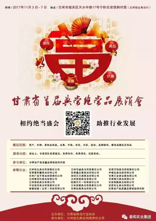 為積極響應黨的十九大號召,落實國家“一帶一路”發(fā)展戰(zhàn)略,引導企業(yè)重拾民品業(yè)務,拓寬經營渠道,11月3日,甘肅省典當行業(yè)協(xié)會在會長王喆的帶領下,常務副會長、秘書長楊麗與協(xié)會工作人員的精心組織下,在各會員單位的共同努力下,由協(xié)會主辦的甘肅省首屆典當絕當品展銷會在蘭州恒生典當行盛大開幕。