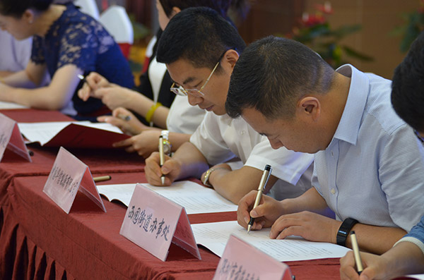 集團(tuán)常務(wù)副總冀晉代表中國華信能源有限公司與西園街道辦事處主任金祥榮簽約