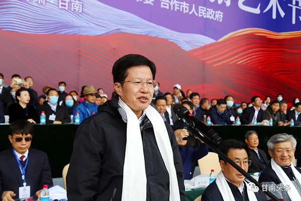 俞成輝在致辭中說,有一種天色叫“甘南藍(lán)”,無須望眼欲穿,夢想的翅膀就會自由飛旋;有一種底色叫“甘南綠”,無須濃墨重彩,信仰的曲線就會自然天成;有一種水色叫“甘南美”,無須詩情畫意,心靈的港灣就會碧波蕩漾;有一種月色叫“甘南情”,無須驀然回首,記憶的廊橋就會燈火闌珊;有一種音色叫“甘南韻”,無須曲高和寡,生命的天籟就會穿越云霄;有一種成色叫“甘南紅”,無須慷慨激昂,奮進的旗幟就會迎風(fēng)飄揚……