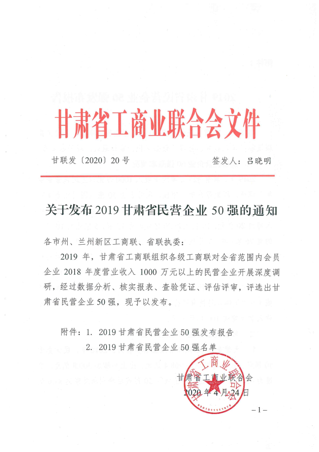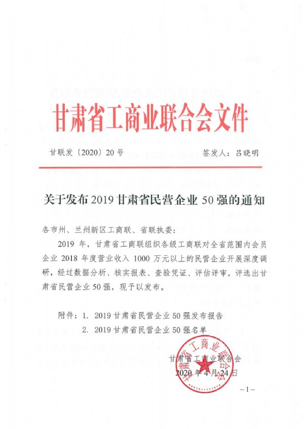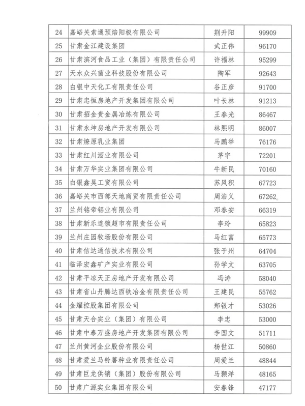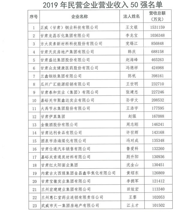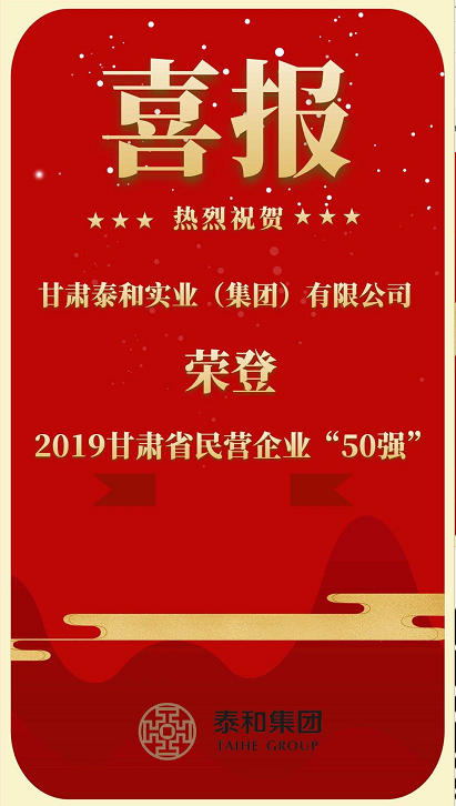 甘肅泰和實(shí)業(yè)(集團(tuán))有限公司榮登甘肅省2019年度民營企業(yè)50強(qiáng)榜單